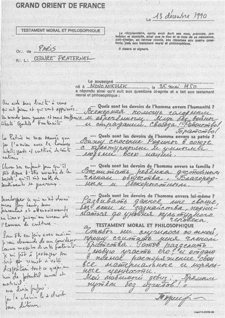 Тайна масонства, о которой я столько читал Она встретилась мне не в полуосвещенной свечою комнате. Не среди инкунабул старинной библиотеки. Она интеллигентно улыбнулась и повела мягкий разговор в самом, что ни на есть рядовом и неприметном офисе столицы. Так в помещении какого-то фонда «Солидарность», в здании бывшего ЦК ВЛКСМ, я познакомился с будущим Великим Мастером Великой ложи России Первая половина девяностых годов. Теме «вольных каменщиков» я посвятил несколько передач на первом канале «Останкино». Сначала появился цикл «Тайны века» (закрытый после четвертой серии в октябре 1993 года), а потом несколько сюжетов о роли масонства в разжигании Первой мировой войны. Они прошли в военной программе «Полигон». Вскоре наша студия получила «разнос» от А. Яковлева, руководившего тогда телекомпанией. Коллег поразило: сам «архитектор перестройки»(1), постоянно находившийся где-то на заоблачных вершинах политической пирамиды и в телевизионные дела почти не вникавший, ТАК отреагировал на небольшие сюжеты. Его злая резолюция гласила: